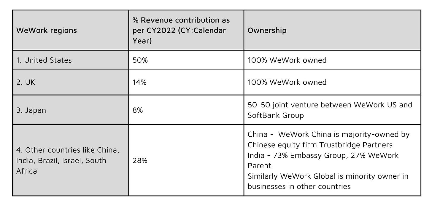 let's understand the regions that contribute revenue to WeWork and their ownership structure